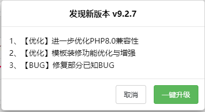 YouDianCMS搭配PHP8.0之后,效率更高,安全性更高!大家可以在后臺直接升級!